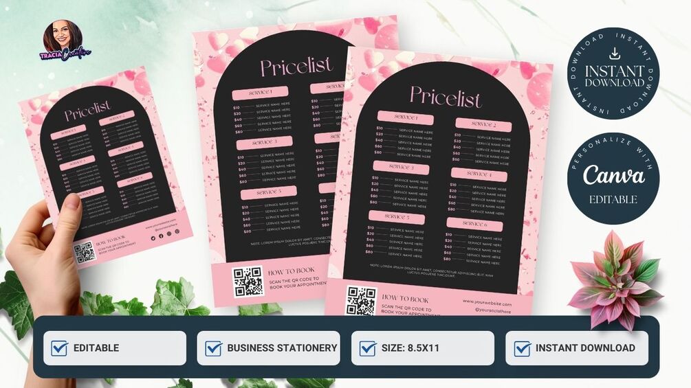 • Easy Customization: Edit in Canva to add your services, prices, and logo.